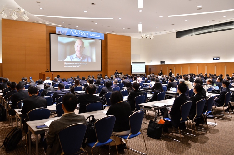 10月25日(土曜日)は、特別シンポジウム「AIとロボティクスが切り拓く歯科医療の未来」、Dr. Jay M. Neugarteによる海外特別講演1「Robotic Precision in Implant Dentistry: Accuracy, Predictability, Reproducibility」(写真3)、Back to the Basics、シンポジウム1~6、専門歯科技工士委員会セミナー、認定・試験・編集委員会セミナー、医薬品医療機器総合機構セミナー、施設セッション1~8、優秀研究発表、企業セミナー、ランチョンセミナー、一般口演、ポスター発表を開催しました。また、ドイツ(DGI)、タイ(TADI)、インドネシア(ISID)に加え、マレーシア、インド、台湾、韓国からの演者をお迎えして国際セッションを開催しました。会員情報交換会には三百数十名のご参加をいただき、ホテルオークラ福岡にて情報交換を行うとともに、懇親を深めました(写真4、5)。