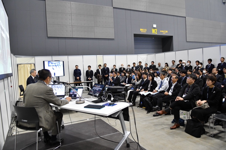 最終日の10月26日(日曜日)は、Dr. Florian Beuerによる海外特別講演2「Preserving the Residual Dentition When Planning Full-Arch Restorations Supported by Implants」(写真6)、シンポジウム7~11、専門歯科衛生士教育講座(写真7)、専門歯科技工士教育講座、専門歯科衛生士委員会セミナー、施設セッション9-17、ランチョンセミナー、一般口演、ポスター発表に加え、今回初の試みとなった歯科技工スタジアム(写真8)が開催されました。福岡国際会議場およびマリンメッセ福岡B館ともに多くの参加者で賑わい、活発な討議が交わされました。また、市民公開講座には、元プロ野球選手の達川光男 氏にお越しいただき、「歯をくいしばって苦しみを笑いに変えた野球人生」をテーマにお話しいただきました。